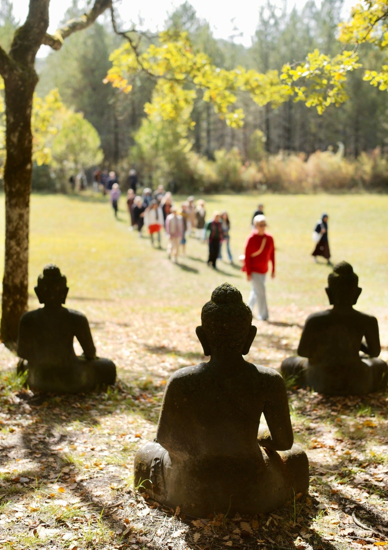 To arrive at Plum Village is to step into the flowing river of a community. Monks and nuns live and practice there and have since 1982, when Vietnamese peace activist and Zen Master Thich Nhat Hanh (“Thay”) founded the sangha. There are rhythms of silence and meditation, deep relaxation and mindful work, ever-present tea and nourishing vegan meals. When the bell rings, everyone stops in stillness. Everywhere there are invitations to be in the present moment and to breathe.