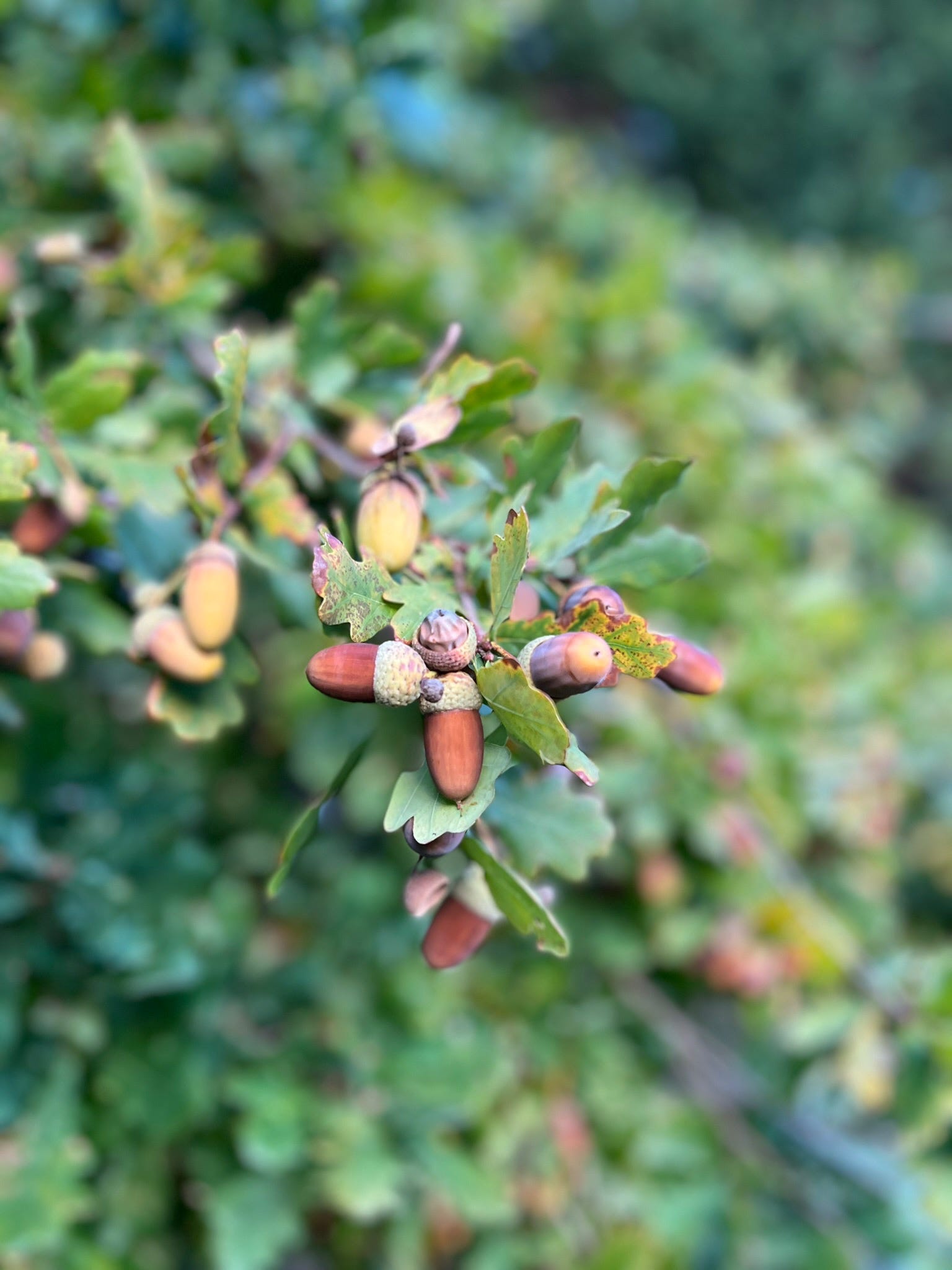 And then there are seeds with adorable caps. You know the ones. Oak trees, I can report, seem to be having quite a mast year in southwest France. The sheer abundance of acorns—and the plop-plop-plop of them dropping—was a striking feature of Plum Village in autumn.